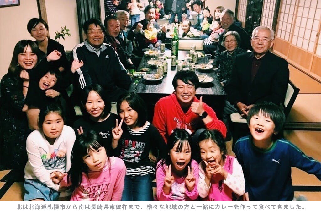 今まで日本全国約30以上の市区町村で8,000人近くの人と、地域の食材を使ってカレーを作り、一緒に食べてきました。
