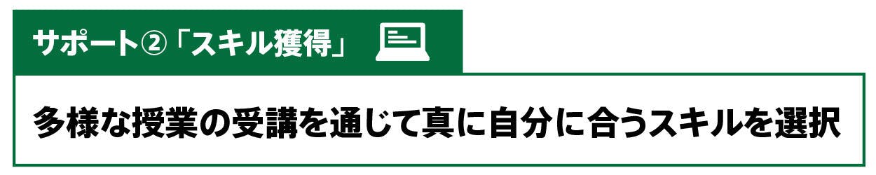 例えば、「知る」機会としては、外部から様々な職種の人を講師として招致し、職務内容や各職務において必要な能力を知る機会を提供します。また「実践」の機会としては、外部企業へのインターンや、オンラインで外部から業務を受注する実践機会、個人事業主の方に同行してフリーランスとしてのキャリアを模索する機会を提供します。
